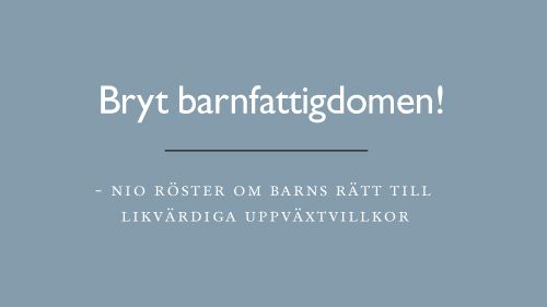 Mer information om ”Bryt barnfattigdomen! – nio röster om barns rätt till likvärdiga uppväxtvillkor” hittar du på www.raddabarnen.se/barnfattigdom