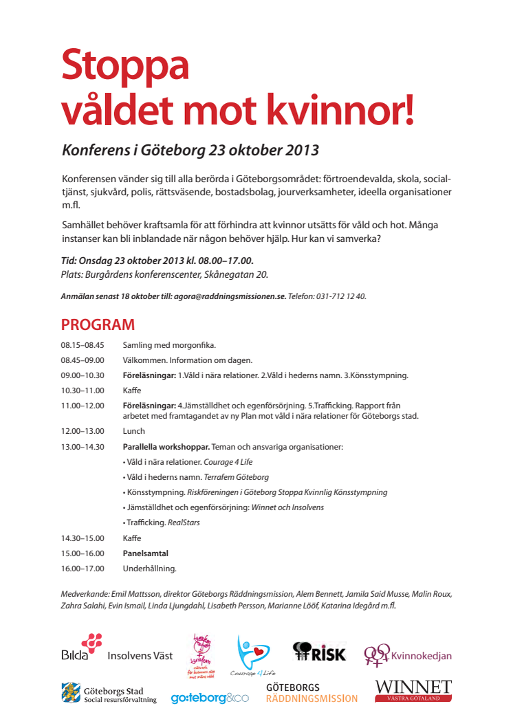 Inbjudan - Stoppa våldet mot kvinnor