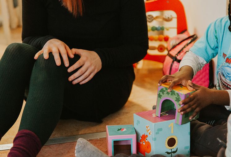 Karin och ett barn från ett av boendena