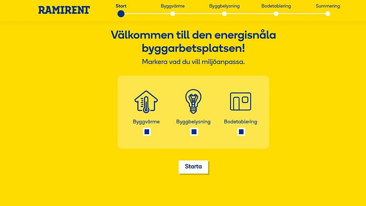 Ramirents webbaserade EcoSolve-snurra visar på ett enkelt och överskådligt sätt vilken skillnad olika val inom belysning, värme och bodetablering gör för utsläpp och energianvändning på en byggarbetsplats. Verktyget används av Ramirents säljare för att tydligt visualisera möjliga miljöbesparingar för kunderna. Det finns även tillgängligt på företagets webbplats för de som själva vill planera.