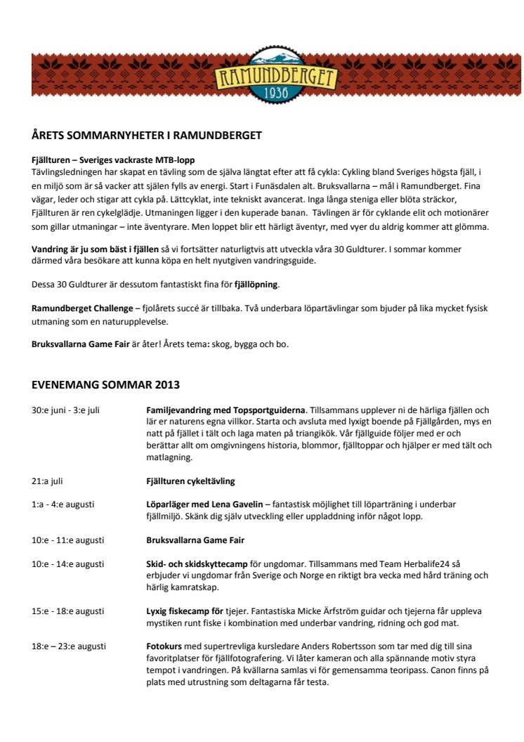 ÅRETS SOMMARNYHETER I RAMUNDBERGET