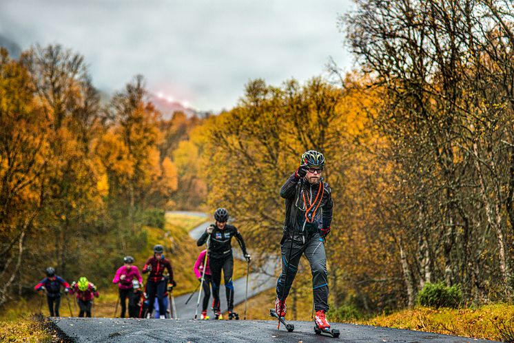 Mellan Ramundberget och Bruksvallarna går en rullskidbana som är populärt bland träningsgrupper och elitåkare. På bilden Jonas Lindqvist, Funäsdalens IF