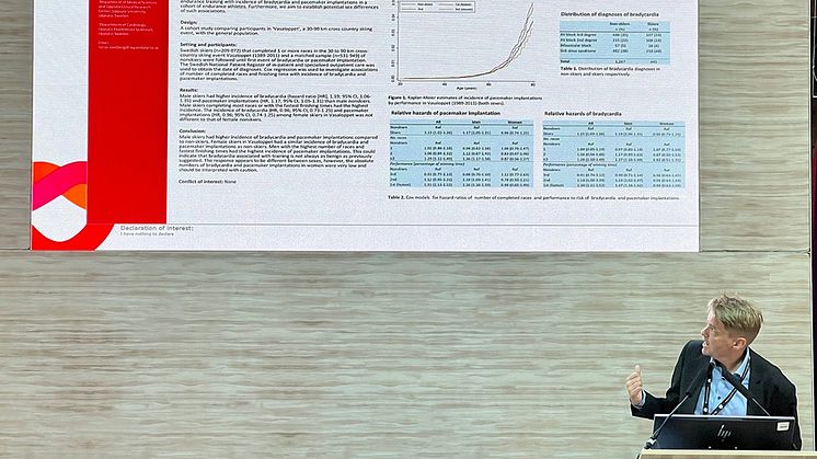 På årets europeiska hjärtkongress i Barcelona presenterades den första studien som undersökt hur många som får pacemaker efter att ha skidat Vasaloppet. ”Risken för behov av pacemaker verkar vara högst bland männen som åkte snabbast och hade åkt många Vasalopp, säger Niclas Svedberg, en av forskarna bakom studien, överläkare och biträdande verksamhetschef i kardiologi vid Falu lasarett.