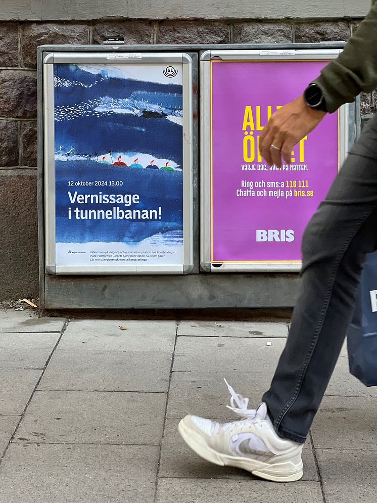 Konstväxlingar är 13 utställningar per år på Gärdet, Slussen, Zinkensdamm, Fridhemsplan samt Skanstull och Odenplan.