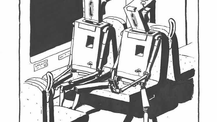 Vidar Francke (f. 1991) är illustratör och animatör utbildad på Konstfack och arbetar med normkreativa frågeställningar. Slussens tunnelbanestation kommer under året ”befolkas” av en serie svartvita teckningar av robotar. Illustratören och animatören Vidar Francke använder robotens anonyma uttryck för att titta närmre på människors beteenden. Lördag 15 oktober har du möjlighet att teckna tillsammans med Vidar i en workshop. Mer information kommer om Världens längsta vernissage.