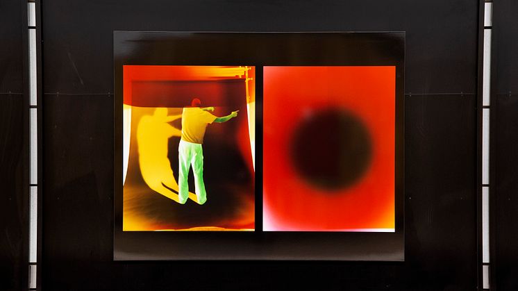 Erik Gustafsson (f.1987) har en masterexamen i konst från HDK Valand och arbetar med analogt fotografi. Fotografierna på plattformens väggar pulserar i färg. Det är resultatet av ett lekfullt undersökande i en fotostudio där kroppar och material har ställts upp framför kameran.