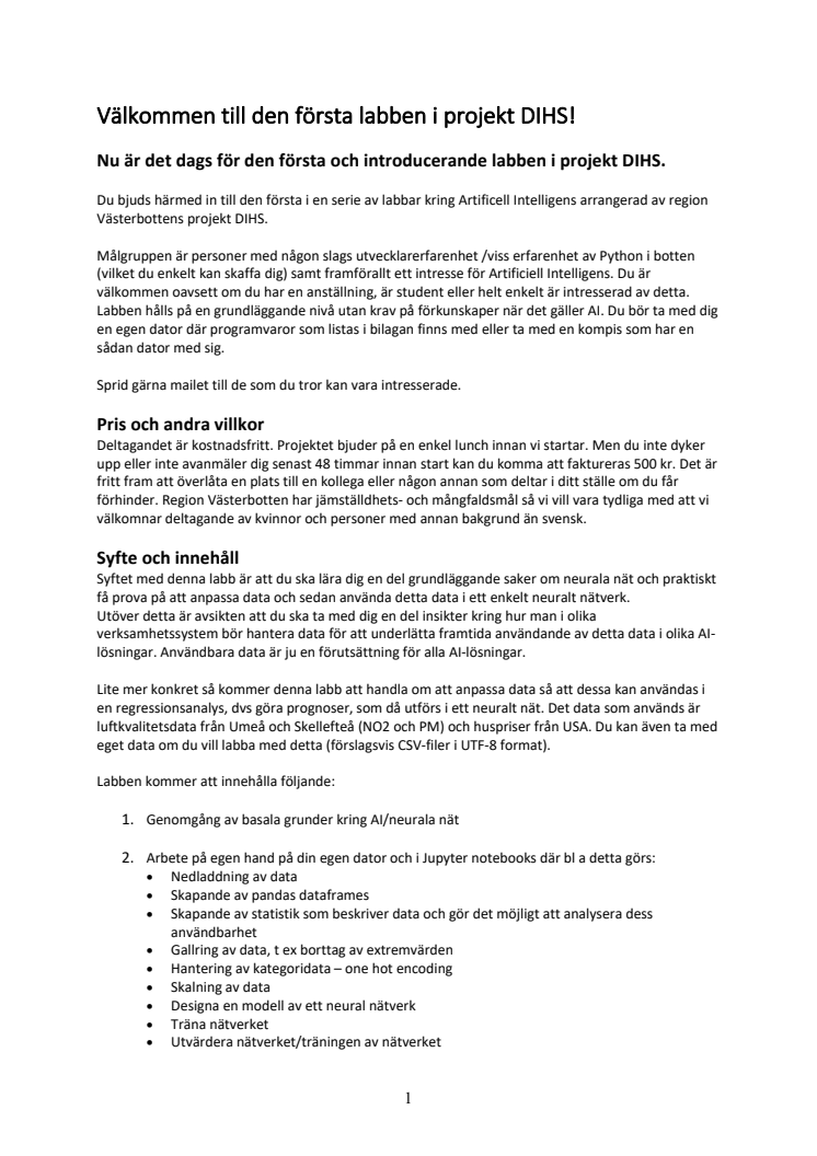 Potentialen i datadriven innovation, inte minst inom AI- området, är enorm. För att välfärden och företagen ska kunna fortsätta att utvecklas positivt kommer en stor mängd datadrivna innovationer behöva skapas. Därför har projektet DIHS lanserats i Västerbotten.