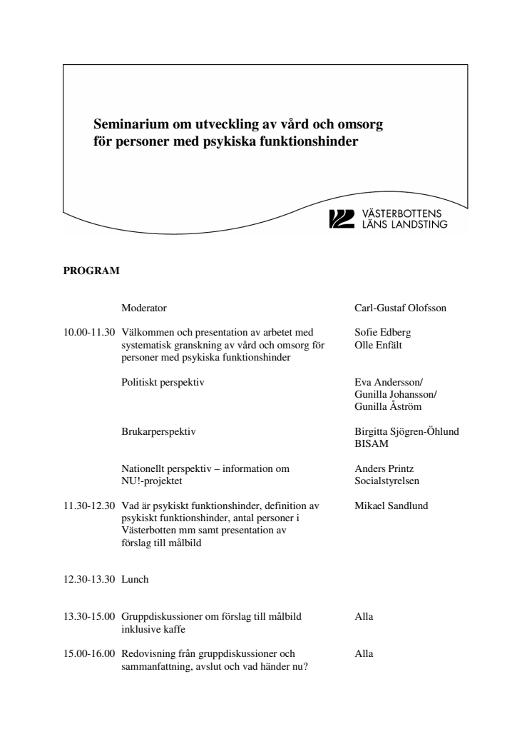 Pressinbjudan: Seminarium om utveckling av vård och omsorg för personer med psykiska funktionshinder