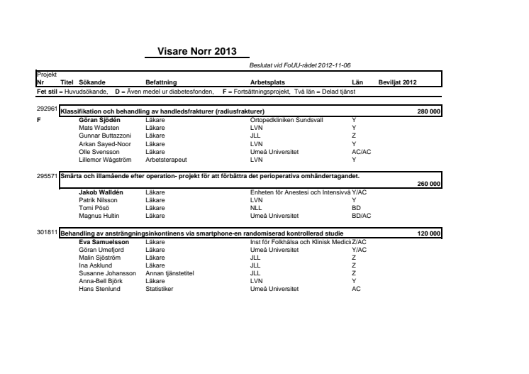 Sammanställning över de forskningsprojekt som får dela på Visare norr-pengar 2013