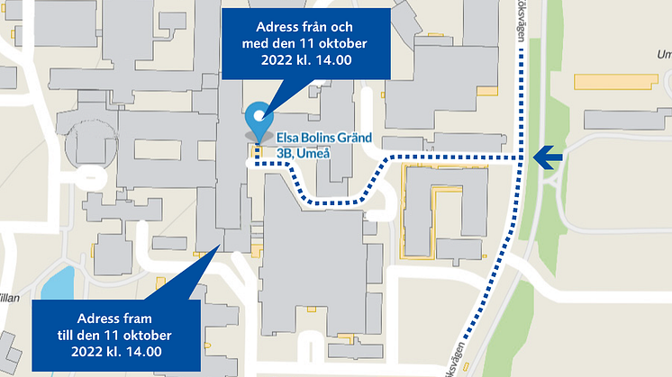 På grund av renoveringar flyttar förlossningen i Umeå till andra lokaler på Norrlands universitetssjukhus. Från och med den 11 oktober klockan 14.00 är födande välkomna till Elsa Bolins gränd 3 B.