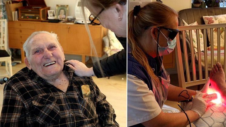96-årige Sven Lundqvist hade ett svårt sår på fotleden som skulle inneburit ständig kontakt med sjukvården för omläggning. Men i januari 2023 började primärvården i Skellefteå att behandla svårläkta sår med medicinsk laser, och nu är Sven helt botad.– Förstå så ont jag hade. Jag är så glad så glad att det funkade, säger Sven Lundqvist.