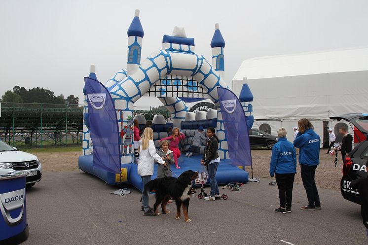 Hoppborg i depån. Dacia välkomnar sina unga anhängare till STCC-finalen på Ring Knutstorp. Foto: Racefoto