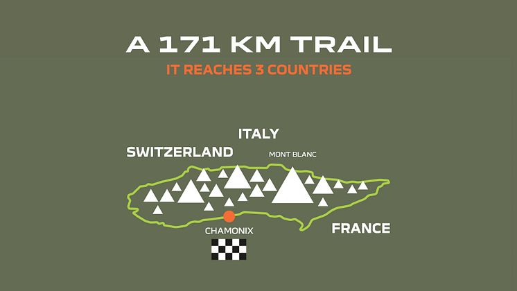 UTMB-rutten tar tävlande genom tre alpina länder med landskap i världsklass – Frankrike, Italien och Schweiz. Utgångspunkten är torget "Place du Triangle de l'Amitié" i Chamonix, Frankrike.