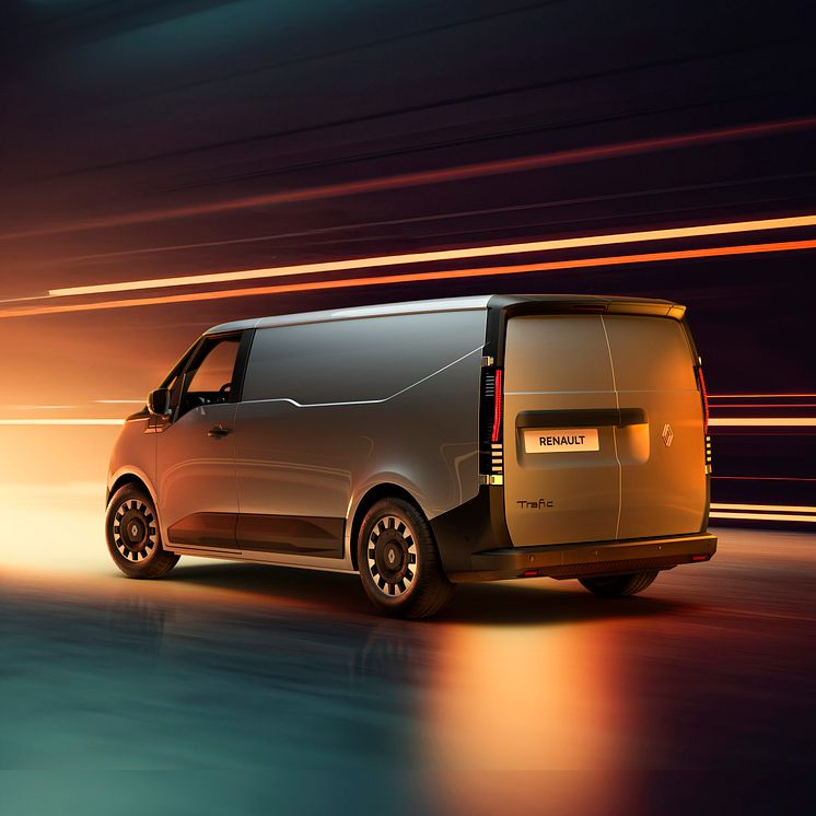 Den ikoniska Trafic-modellen, som lanserades 1980 och har sålts i över 2,5 miljoner exemplar, kommer nu i en fjärde generation. Trafic E-Tech Electric har en ren och dynamisk design med kort framöverhäng och en förlängd hjulbas, vilket maximerar interiörutrymmet utan att kompromissa med smidigheten – vändradien är jämförbar med en Renault Clio. Med en höjd på under 1,90 meter blir den dessutom enkel att parkera i garage.