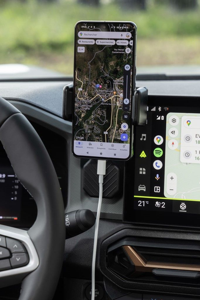 Telefonhållare som standard på alla utrustningsnivåer: På versioner utrustade med Media Display och Media Nav Live är 2 USB C-uttag placerade på framsidan och 2 på baksidan för att driva upp till 4 enheter. De 4 uttagen är bakgrundsbelysta.