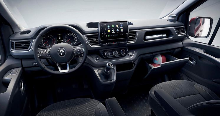 Nya Trafic har Renault EASY LINK multimediasystem med möjlighet till integrerad navigering ombord. Systemet är kompatibelt med Android Auto ™ och Apple CarPlay ™, och körs på en 8-tums pekskärm och kommer även med en 15 W induktionsladdare som tillval. Instrumentpanelen har ett 4,2-tums färgkluster. Det finns också tre USB-uttag ombord.