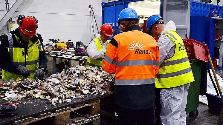 I slutet av oktober genomförde Renova tillsammans med ägarkommunerna ett försök med helt automatisk sortering av hushållssopor vid en toppmodern återvinningsanläggning i Lilleström i Norge. Syftet var att se hur mycket ytterligare återvinningsbart material som kan plockas ur hushållsavfallet.