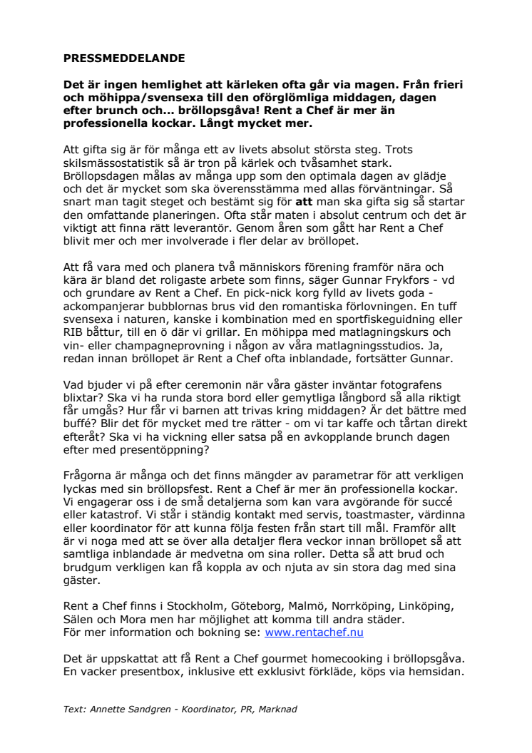 Kärlek via magen - Rent a Chef är mer än professionella kockar.