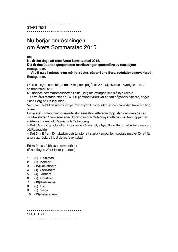 Nu börjar omröstningen om Årets Sommarstad 2015