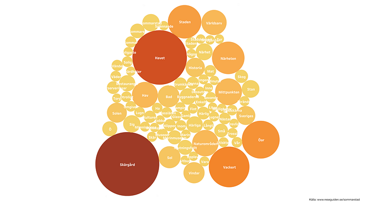 Undrar du vad som gör staden Karlskrona så populär? Här ser du svaren i ett ordmoln från resesajten Reseguiden.se. Några av de mest frekventa orden om Karlskrona var "Skärgård", "Havet" och "Öar".