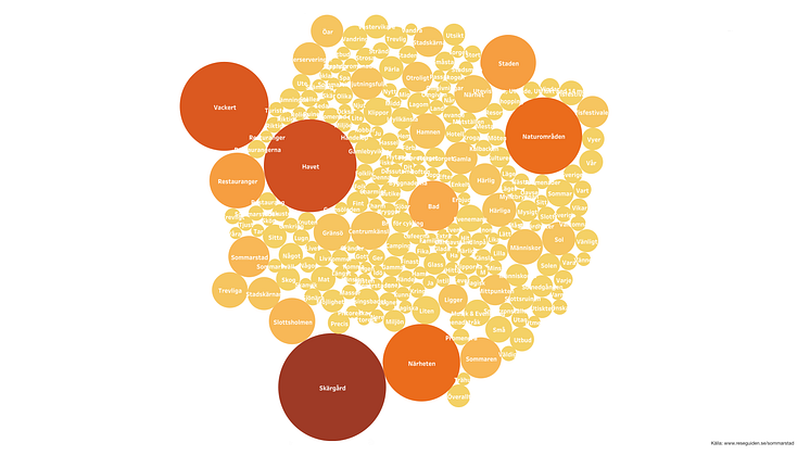 Undrar du vad som gör staden Västervik så populär? Här ser du svaren i ett ordmoln från resesajten Reseguiden.se. Några av de mest frekventa orden om Västervik var "Skärgård", "Havet" och "Naturområden".
