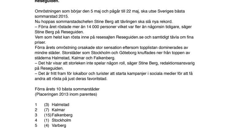 Omröstningen som börjar den 5 maj och pågår till 22 maj, ska utse Sveriges bästa sommarstad 2015.