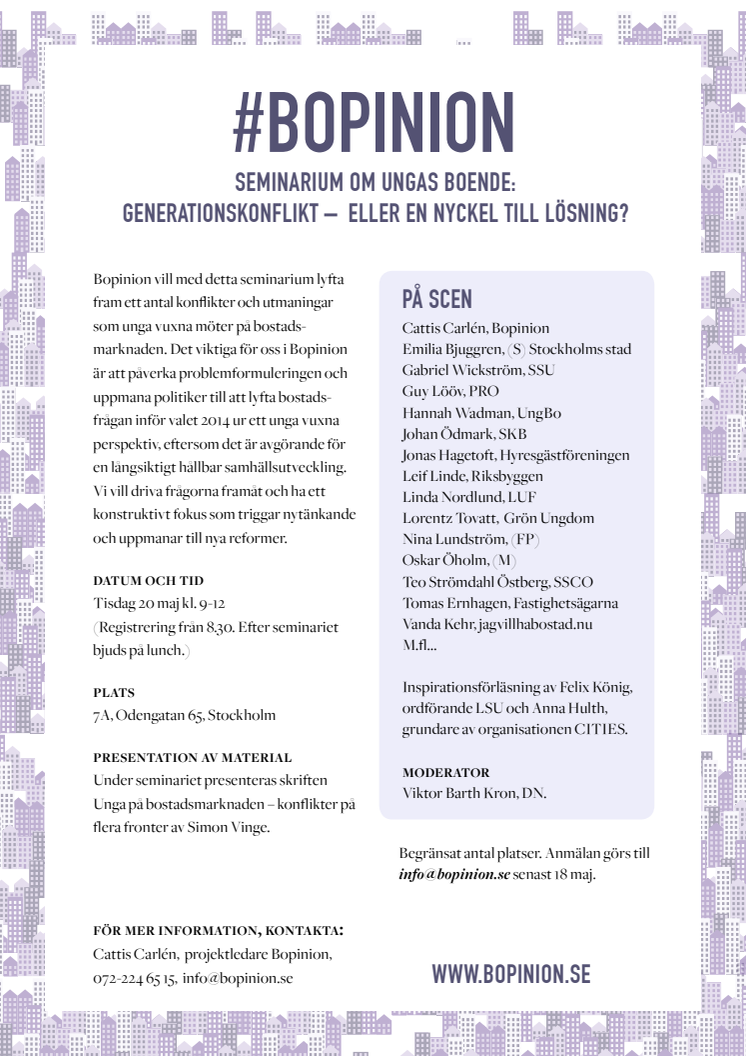 Under seminariet presenteras skriften "Unga på bostadsmarknaden – konflikter på flera fronter", av Simon Vinge.