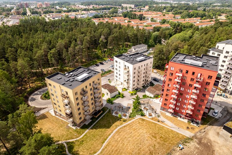 Kv. Kornknarren - Flygbild mot Erikslunds shoppingcenter