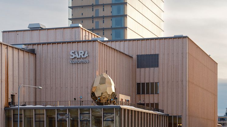 På uppdrag av Riksbyggen skapade Solar Egg av konstnärerna Bigert & Bergström som i över 30 år satt ljus på planetens klimatförändringar genom sin konst. På prisbelönta Sara kulturhus tar Solar Egg nu plats fram till 30 april 2023.