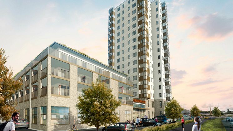 Gekås i Ullared uppför ett 16-våningshus vid Vesterhavsporten i Falkenberg. Riksbyggen utökar sitt samarbete med Gekås och kommer att förvalta den nya fastigheten som totalt innehåller 131 hyresrätter. Inflyttningen startar i januari 2020.