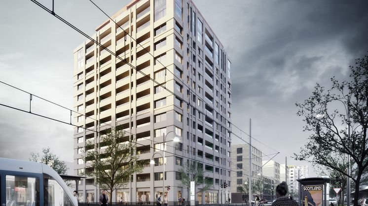 Elof Hansson Fastigheter kommer att äga källarplanet och de sju första våningarna ovan mark för kommersiella lokaler och bostäder. Riksbyggen planerar för en bostadsrättsförening med 80 lägenheter i våning 8-16.