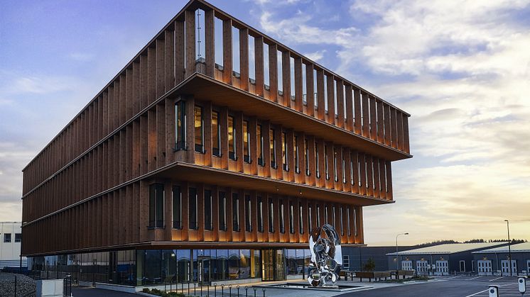 Byggnaden är uppförd i huvudsak av trä, det minst koldioxidkrävande byggmaterialet och är unik avseende arkitektur, konstruktion och miljö. Miljön i huset gör sig påmind både i konstruktionsmaterialet och i inslag av grönskande arkitektur ”biophilic design”. Det är ett koncept som används inom byggbranschen för att öka naturupplevelsen genom användning av växter och därigenom skapa positiva hälso- och miljöaspekter.