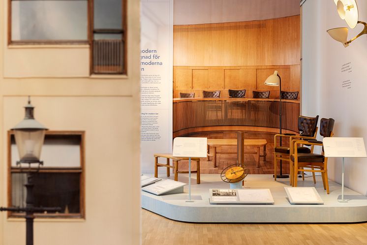 I utställningen "Asplund och rådhuset" visas fotografier, skissmaterial och inlånade originalföremål från rådhuset, som stolar, lampor och bord.