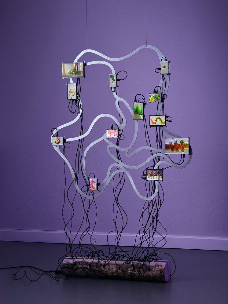 Verket "Wheel of Life" av Wang & Söderström visas i utställningen "Vassa spröt – Mjuka antenner". / "Wheel of Life" by Wang & Söderström in the exhibition "Sharp Feelers - Soft Antennas".