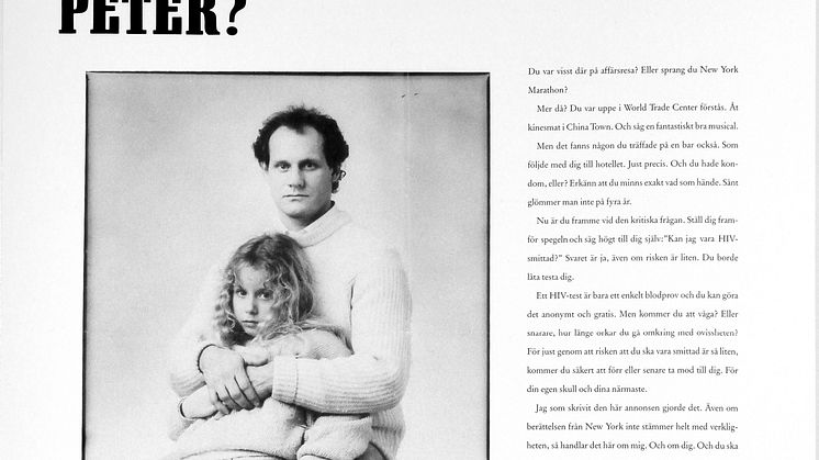 “Allt började med notiser, som växte till artiklar, stora rubriker och hetsiga löpsedlar. För 30 år sedan uppmärksammades hiv för första gången i Sverige. När man ser tillbaka på de trettio åren får man en bild av ett samhälle i förändring. Såväl modet, konsten som musiken har ändrat skepnad ett flertal gånger. I motsats till det har bilderna av hiv och av personer som lever med sjukdomen förblivit oförändrade.”