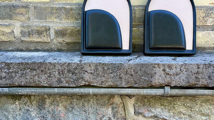 Utställningen Backa framåt – arbete(t) pågår visar skulpturer och textila verk med inspiration från alldagliga föremål, design, mönster och upprepningar.