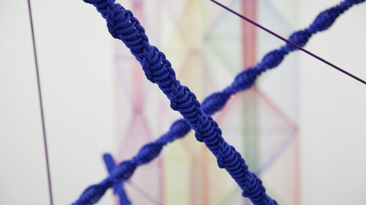 I utställningen på Kulturcentrum Ronneby konsthall knyter Bella Rune ihop många av trådarna i sitt konstnärliga arbete under de senaste åren. Med utgångspunkt i ett utvidgat textilt begrepp med intresse för hur väv, mönster och repetition skapar ytor, volymer och system hittar Rune nya sammanhang och frågeställningar kring hur det analoga och hantverksmässiga kan användas för att greppa nya digitala materialiteter. Utställningen String Revolution är en hyllning till snöret som en av de viktigaste mänskliga uppfinningarna. Borde benämningar av tidsperioder som sten-, brons- och järn- i framtiden ersättas av snörtiden?