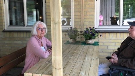 Äkta makarna Lagerlund hade inte träffats på nästan tre månader när man i slutet på maj kunde inviga mötesbänken framför vård- och omsorgsboendet Ålycke i Johannishus för första gången.