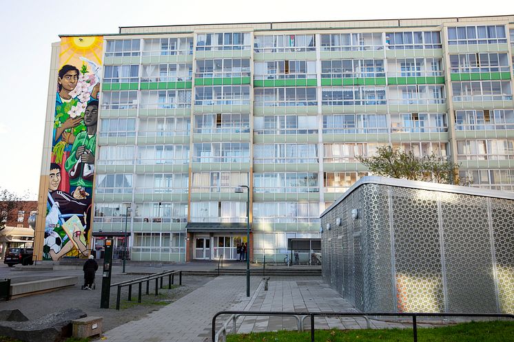 Bennets väg 43-49 samt miljöhus vid Örtagårdstorget.