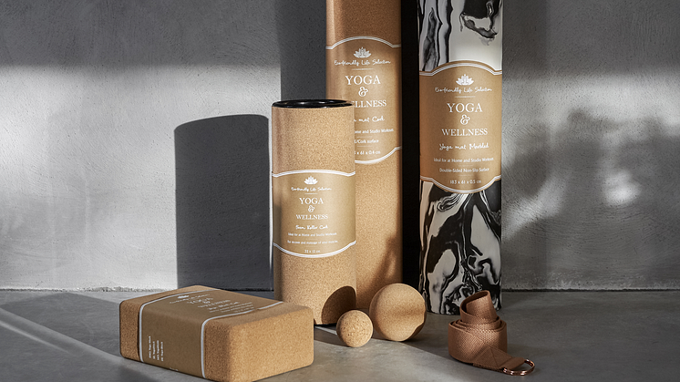 De nya yogaprodukterna består bland annat av yogablock i kork och yogamattor i TPE. Yogablock, foam roller och massagebollar är tillverkade av återvunnen kork som kommer från restprodukter och alla etiketter är tryckta på återvunnet papper.