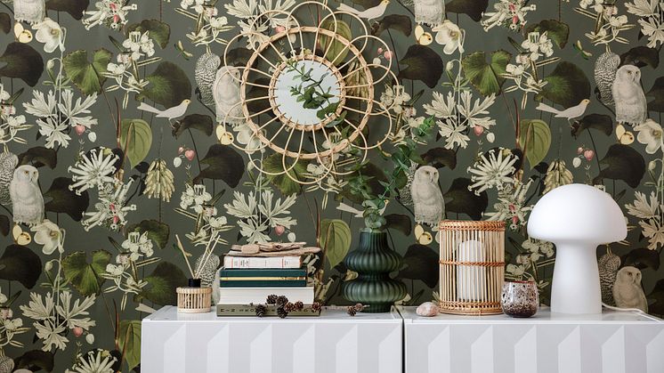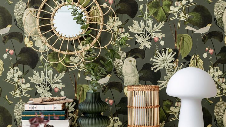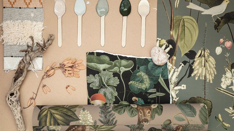 På tapeterna Oh deer, Fairytale och Wonderland syns mönster inspirerade av den nordiska naturen och dess flora och fauna, i ett manér som för tankarna till sagovärlden.