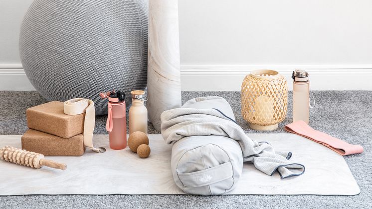 Yoga är perfekt att utföra i hemmets lugna vrå, och i vår finns flera nyheter för såväl nybörjaren som den erfarne yogin. En yogamatta i naturgummi med snyggt marmortryck ger perfekt dämpning vid övningar på golvet. Med ett toppskikt av mikrofiber är mattan både mjuk och len mot huden samtidigt som den ger ett bättre grepp.