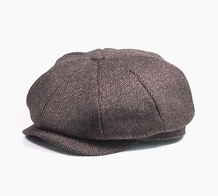 Glinder brun fiskben flat cap.jpg