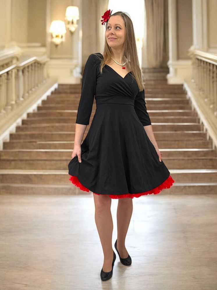 Glinder svart klänning med trekvartsärm.jpg