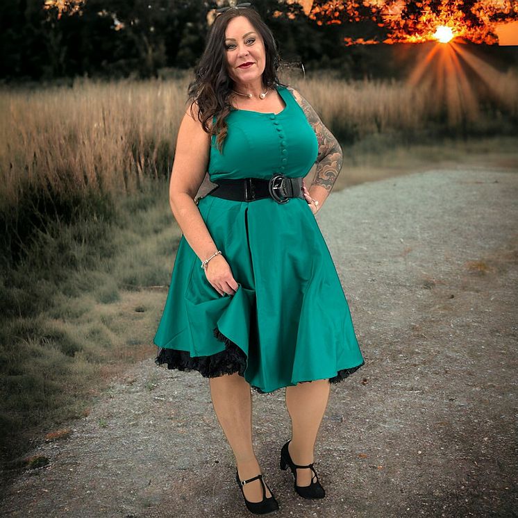 Glinder turkos klänning med svart bälte.jpg
