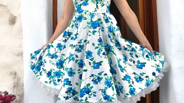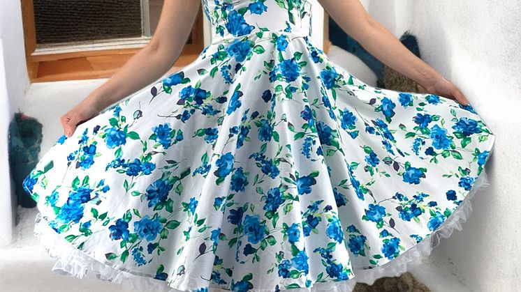 – Den här klänningen är skapad för att få bäraren att känna sig vacker och bekväm. Den passar både till dans runt midsommarstången och en somrig kvällsmiddag, fortsätter Veronika.