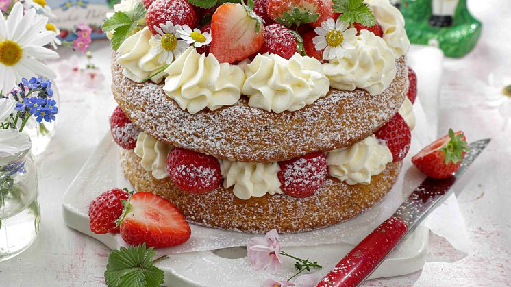 Nu kan du inspireras av hennes tårta till midsommar. Köp färdiga bottnar om du inte hinner baka själv.