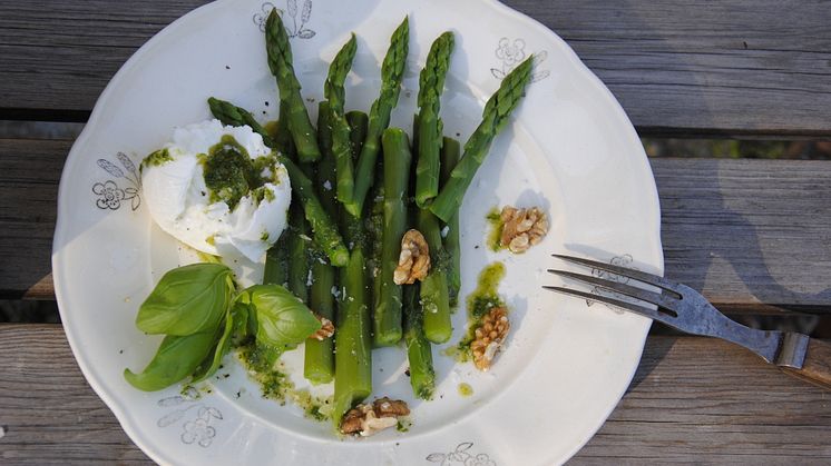 Ett av startskotten för den svenska grönsakssäsongen på friland är sparrisen. Tack och lov odlas en del i tunnlar för att kunna växa till sig även om våren är kall. Men det är nu säsongen är här så ta tillvara på den innan alla andra härliga grönsaker blir skördeklara i vår svenska mylla. Grön och vit sparris är samma sort, men odlas på olika sätt. Den vita kupas över och växer under jorden utan ljus. Den gröna får se solen och får därmed sin vackra gröna färg. Eftersom sparris är en extrem färskvara, är närodlad sparris att föredra. Runt midsommar är det dags att sluta skörda så att plantan kan lagra näring i rötterna till nästa års skörd. Sparrisen fortsätter att utvecklas efter att den skördats och därför är låg temperatur och hög luftfuktighet viktigt. Skördad sparris förvaras bäst i mellan +1 och +2 °C.