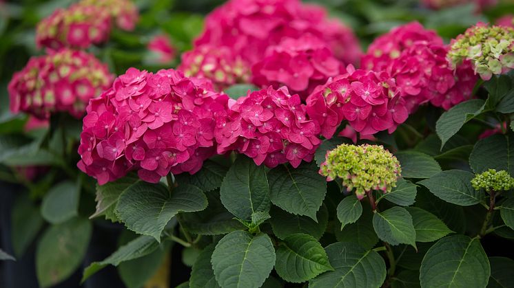 Omväxlande sol och regn – perfekt för att plantera i trädgården! Och visst är det roligt att göra fint i trädgården inte bara för i år utan för framtiden. Det finns otroligt många vackra perenner och inte minst i hortensiasläktet. En ny och superfin sort är Summer Love®. Den blommar med ett överflöd av hallonröda blommor i stora rundade blomställningar. Om den står i sur jord får blommorna en blåare ton. Summer Love blommar på både års- och fjolårsved och den har ett glänsande grönt och frodigt bladverk.