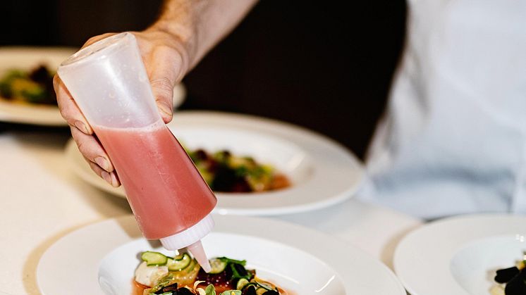 Jakob smaksätter sin tomatdressing med fermenterad tomat som ger en speciell och fin karaktär. Alternativt smakar du av med bara lite vitvinsvinäger.